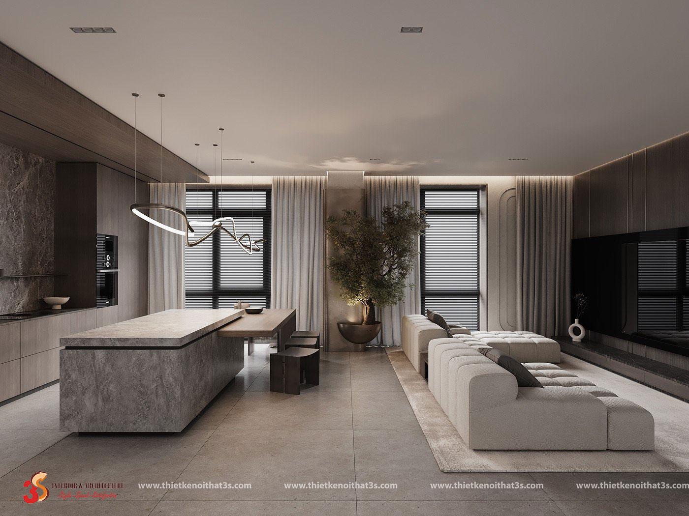 Thiết kế nội thất căn hộ hiện đại tối giản 3 phòng ngủ