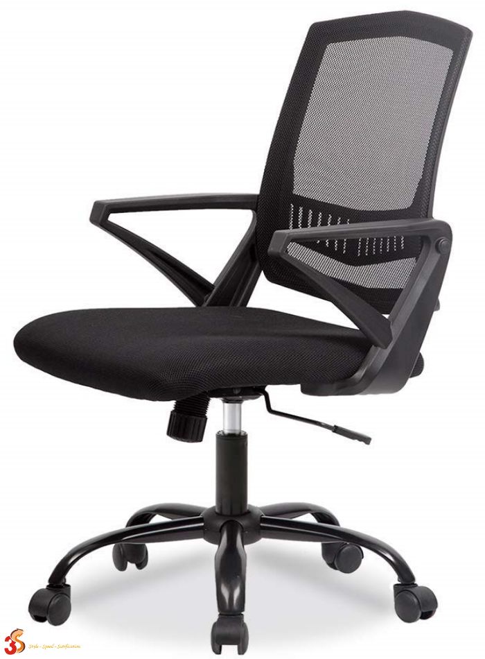 Một mẫu ghế văn phòng đẹp với giá cả phải chăng, kiểu ghế xoay AmazonBasics sẽ làm cho lưng bạn cảm thấy thoải mái và trông thật phong cách. Ghế được bọc bằng da và nhựa PVC làm cho ghế rất dễ để lau chùi nhưng cũng khiến bạn dễ đổ mồ hôi.
